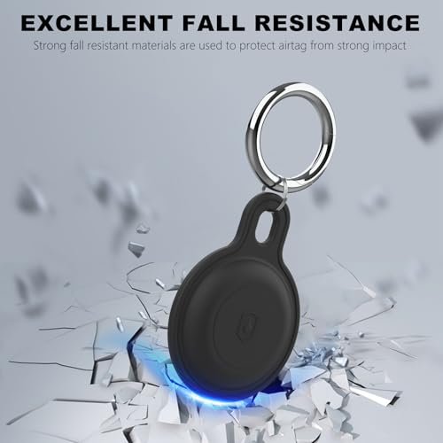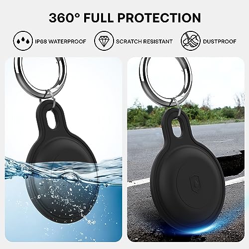 Airtag Holder Air Tag Case, Anti-Scratch Airtag Keychain for Apple Air Tags, Waterproof Silicone Case with Keychain, Protective Cover Keyring Finder Tracker Compatible Apple AirTag(Matt Black)
